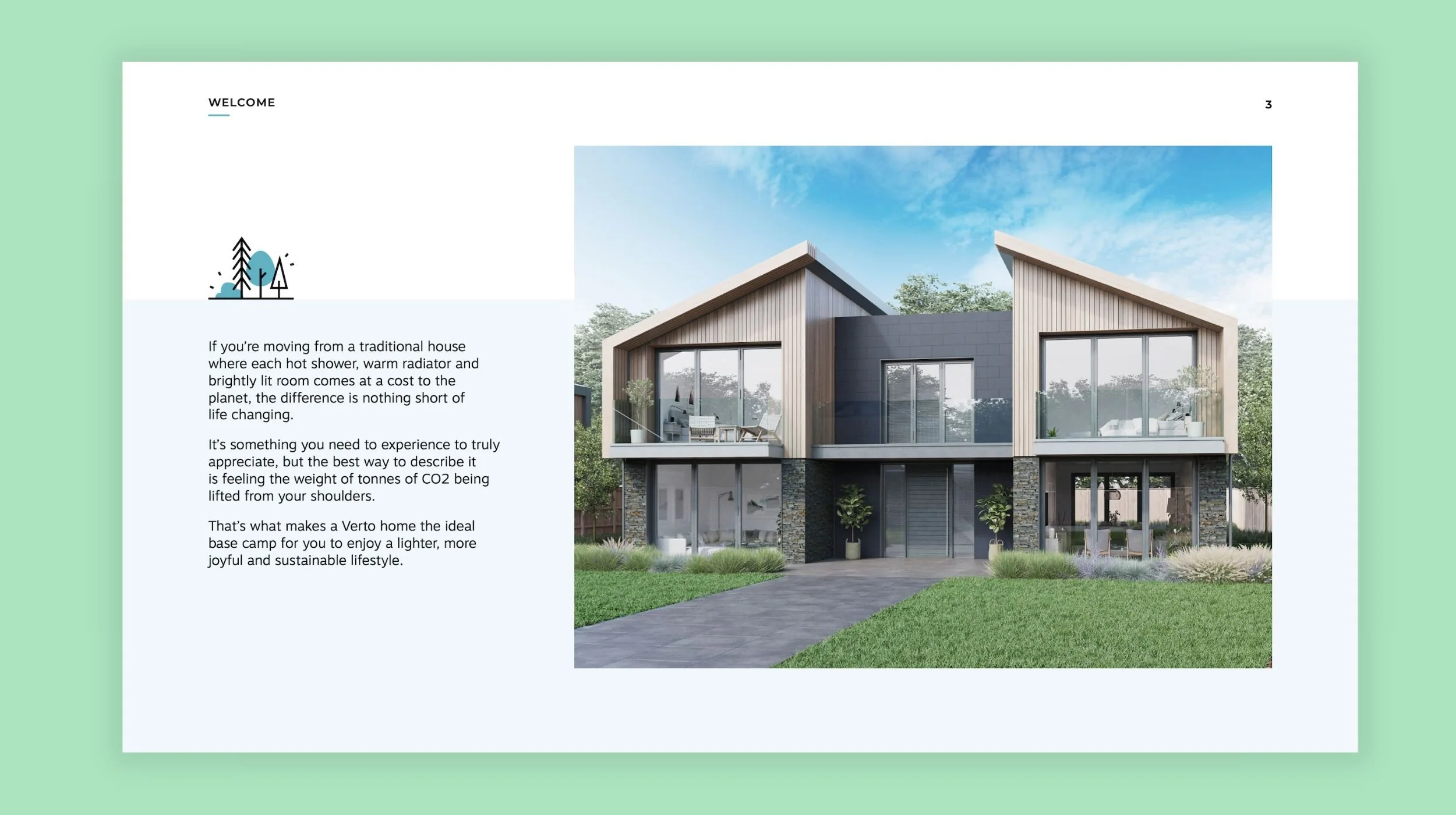 A Verto home is more than a home. It’s the basecamp for a truly zero-carbon lifestyle. We wanted this life-changing impact to come through in the brand’s storytelling.